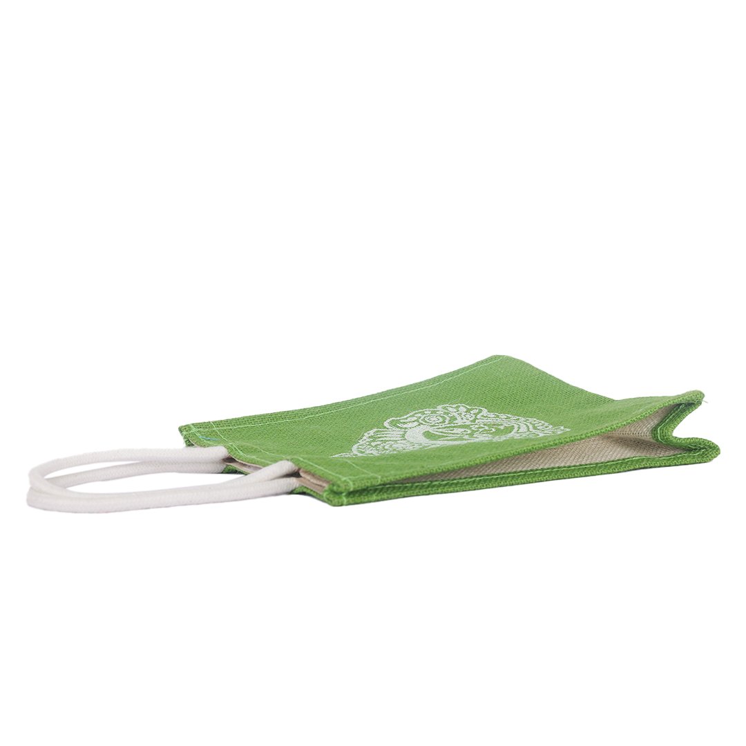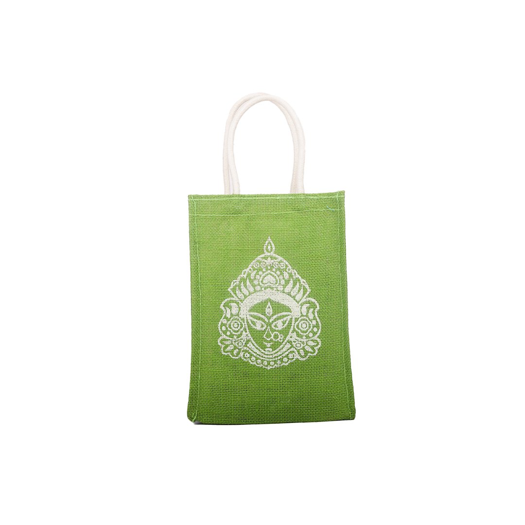 Celebrate tradition with sustainability using this Durga-printed green jute bag. Made from premium natural jute, it features a white hand-printed Durga motif that adds a touch of cultural charm. Lightweight, durable, and eco-friendly, it’s perfect for festive gifting or daily use.