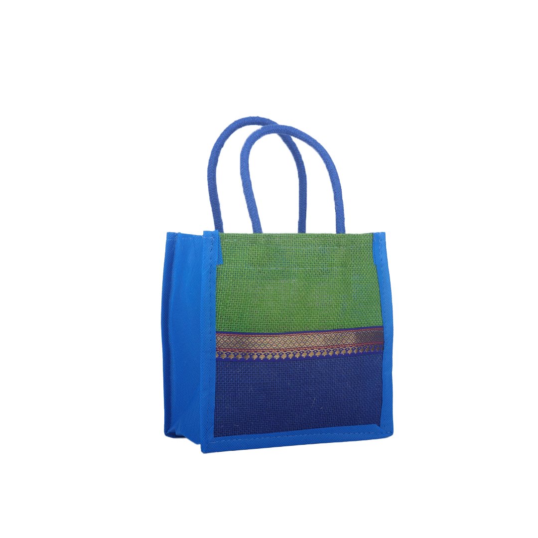 Green & Blue Dual-Tone Jute Bag