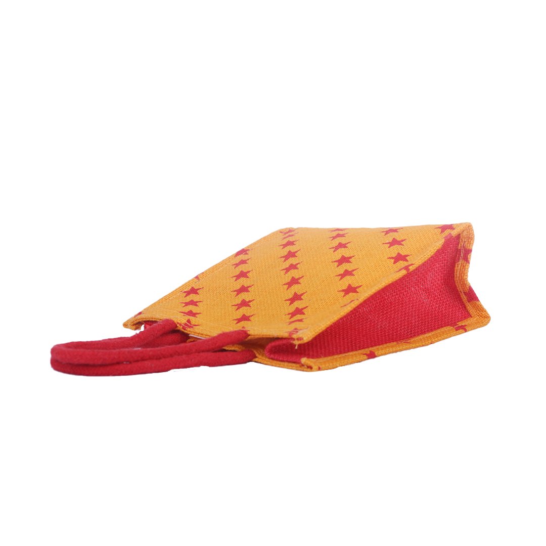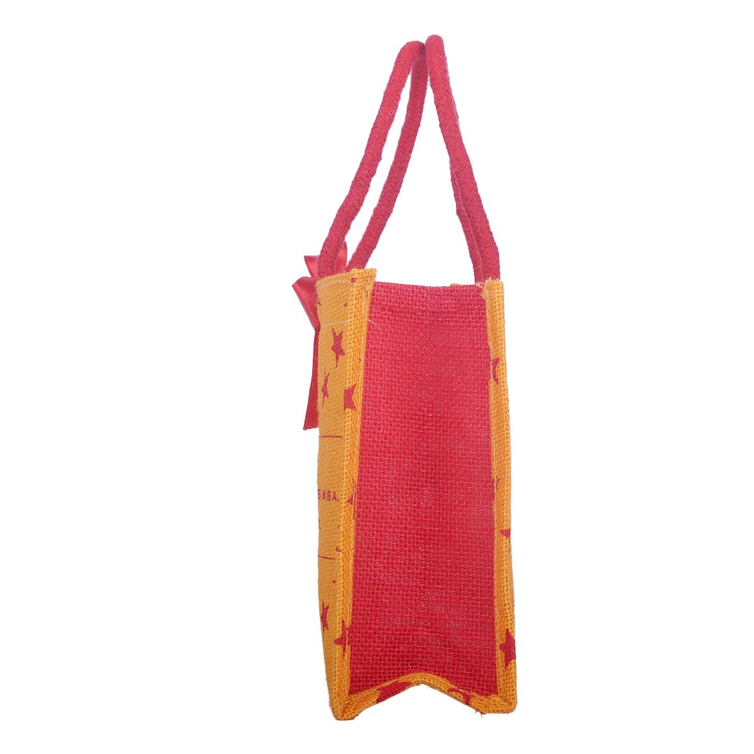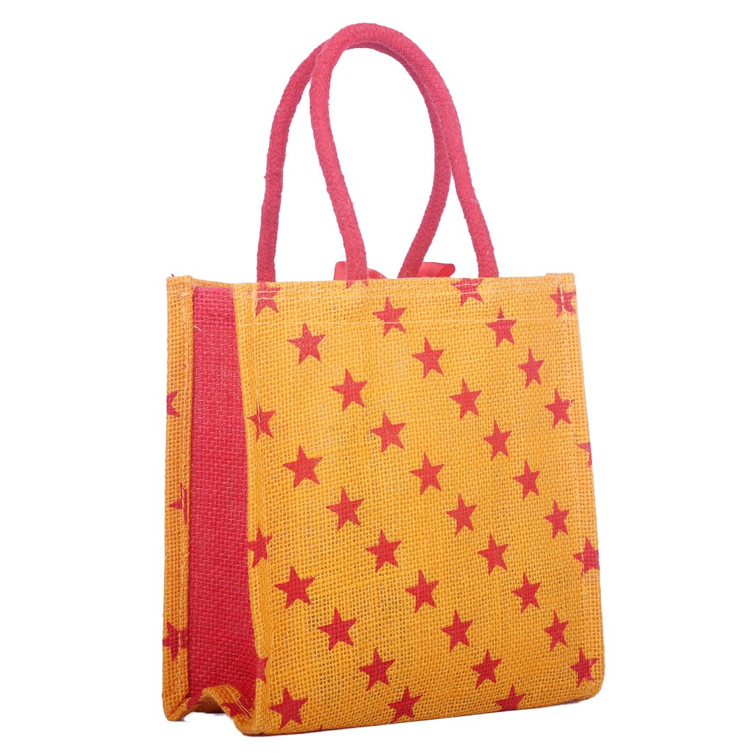 Bright and cheerful, this yellow jute bag adorned with red star prints brings a fun and lively touch to eco-friendly fashion. Crafted from durable natural jute with matching red handles, it’s perfect for gifting, daily use, or return favors that make a stylish statement while caring for the planet.